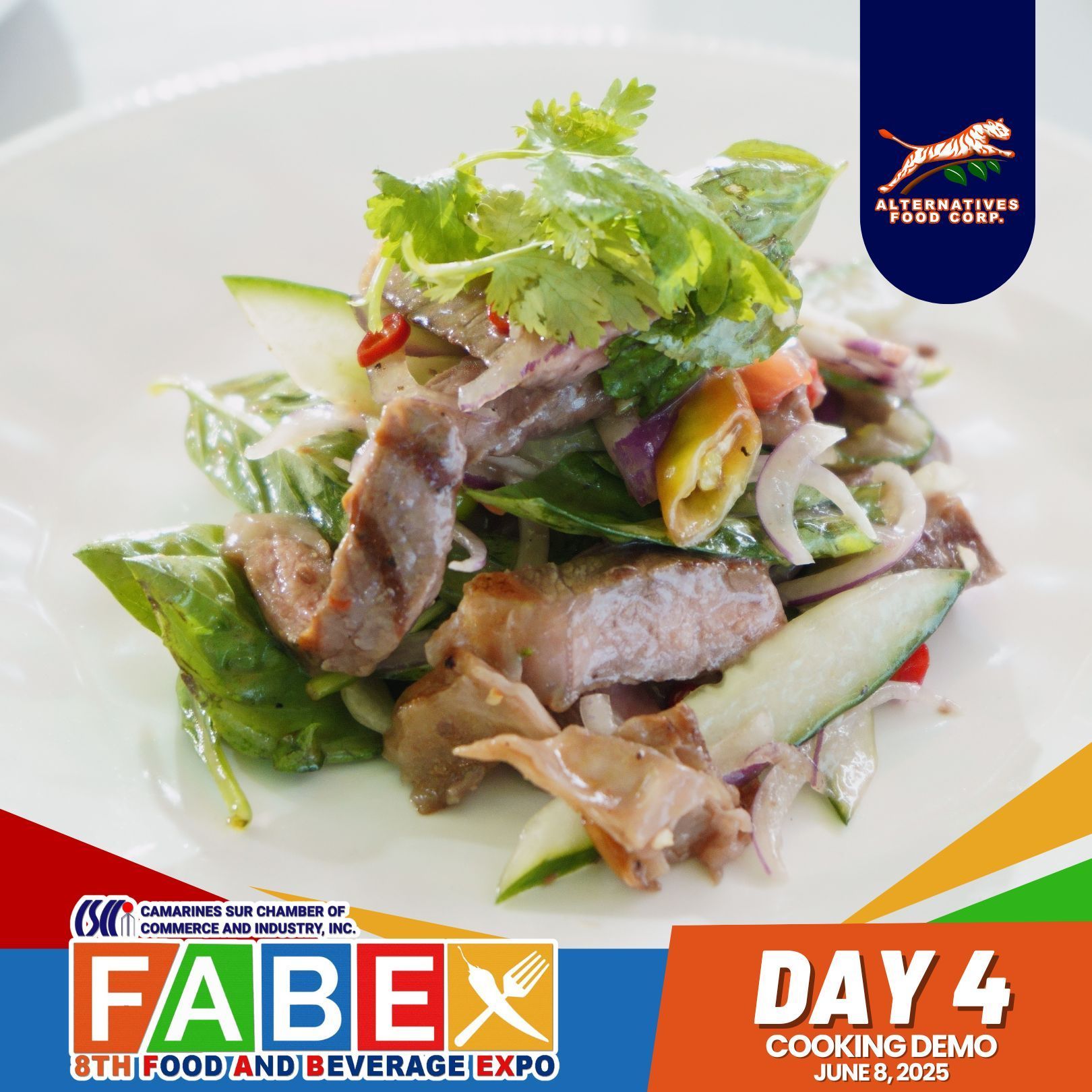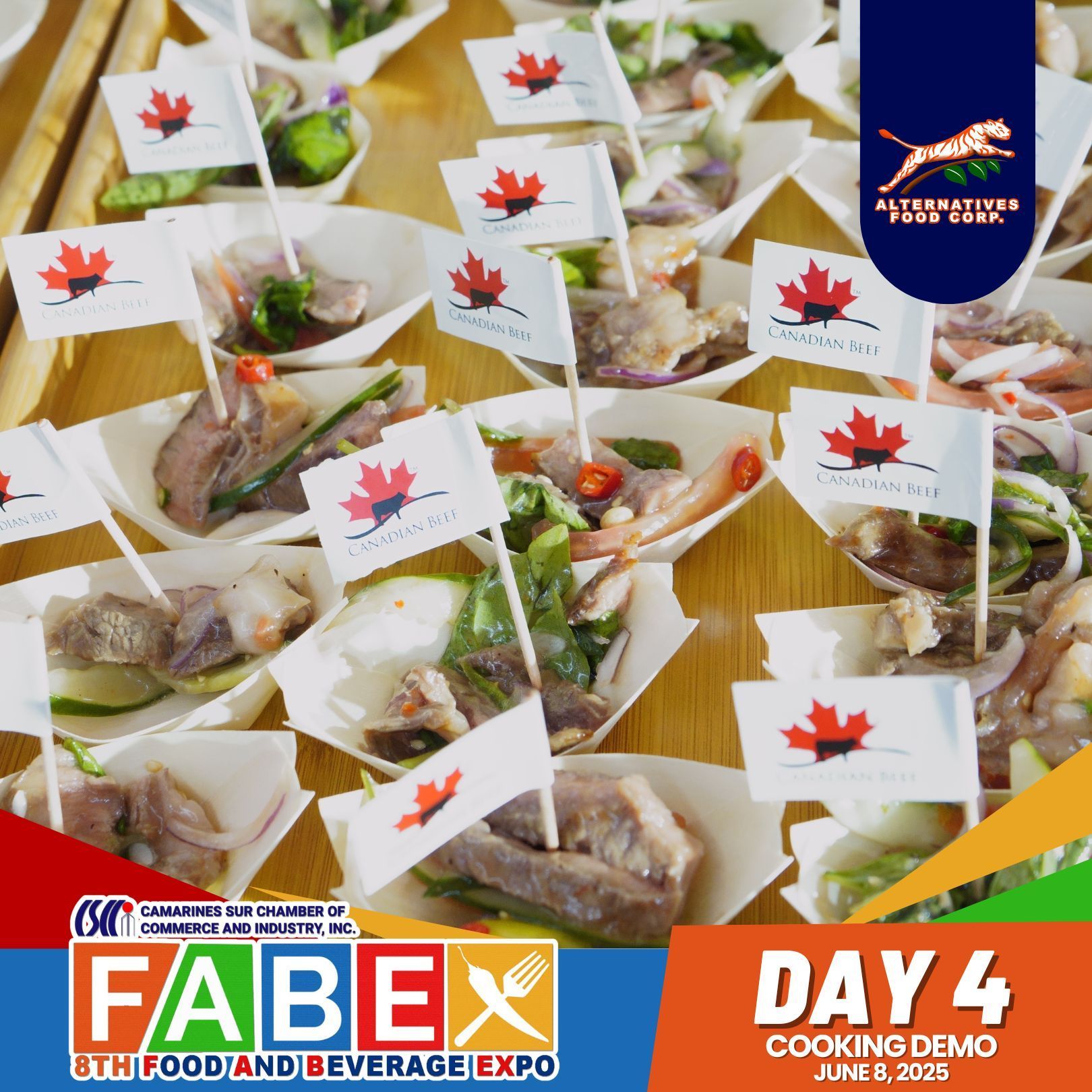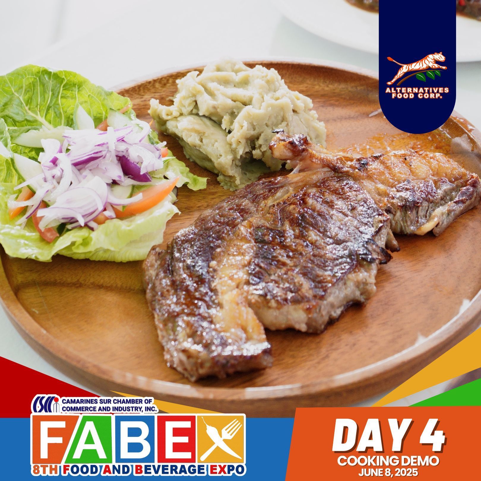 Joining FABEX for the first time was a truly fabulous experience. Held on June 5–8, 2025, at the Atrium of Robinsons Place Naga, the event was made even more special through a partnership with Chef Francis Joseph “Kiko” Tugnao and sponsorship from Canada Beef. Chef Kiko showcased the rich flavors and versatility of Canada Beef through a live cooking demo featuring Hanging Tender Salpicao (using Cow Hanging Tender – CAR), Ribeye Steak with Sweet Potato and Blue Cheese Sauce (using Ribeye Lip On, Prime – EX), and Striploin Salad (using Beef Striploin, Choice – SS). It was a meaningful gathering that brought together the Bicol culinary community to experience and appreciate the premium quality of Canada Beef.